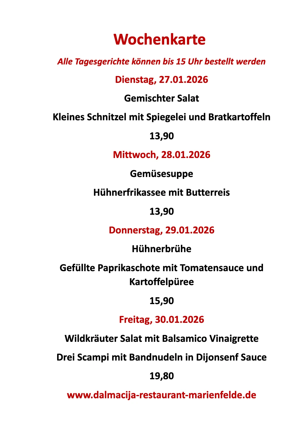 Unsere Wochenkarte